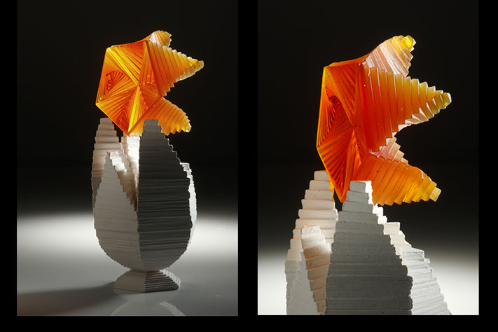 The Kreeturs start the move from my usual relief casting, towards a more three dimensional shape - being the first pieces where the spiral forms are a positive form, rather than a negative shape. (though looking through the polished surface, the spirals can seem to do the opposite). I'm fascinated by how this hard, repetitive geometry manages to allude to the natural world.