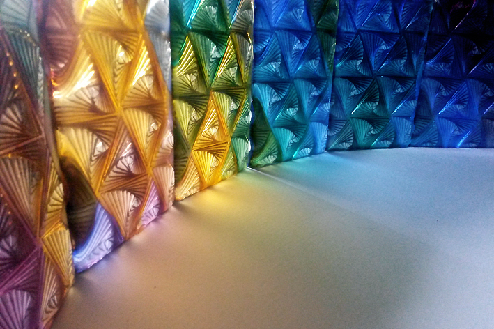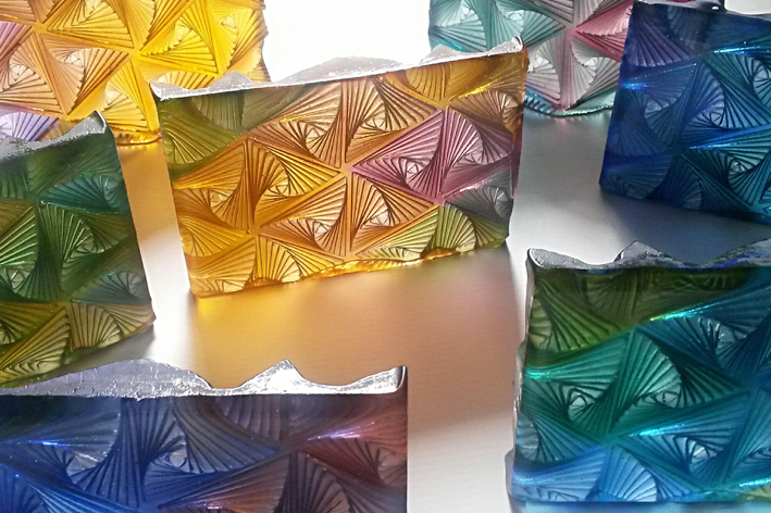 Based on the architecture of 30 St Mary Axe (better known as the Gherkin). The initial postcard was originally created and sold during the Contemporary Glass Society (CGS) fundraising exhibition, 'Wish You Were Here'.