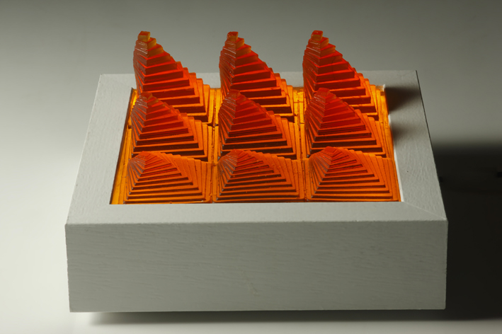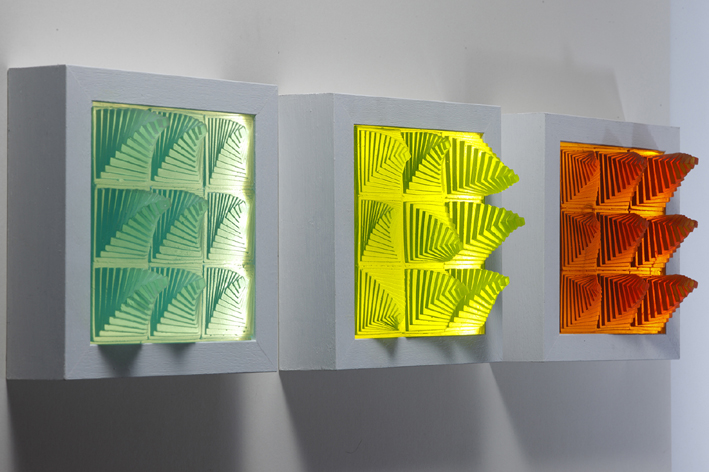 These panels were the start of a new series of work - and a new, modular, way of working. I created the first three panels using traditional lost wax casting, for Bruntnell-Astley's pop-up exhibition, 'The Heat is On'. But during the making process, realised that I could develop a modular system using silicone - avoiding the need for wax. As image 3 illustrates, this new system allowed for more speedy production of many different compositions.