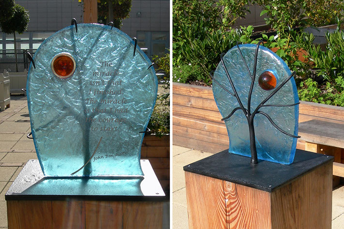 Two pieces in memory of Jane Ashley, my aunt. These are on a roof terrace garden next to the new cancer ward at the Churchill Hospital, Oxford.